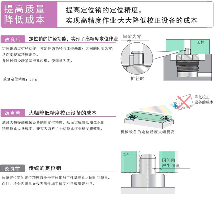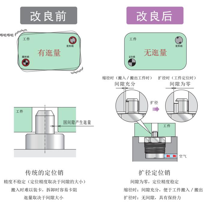 定位销通过扩径,使定位销销径与工件基准孔之间的间隙调整为零!